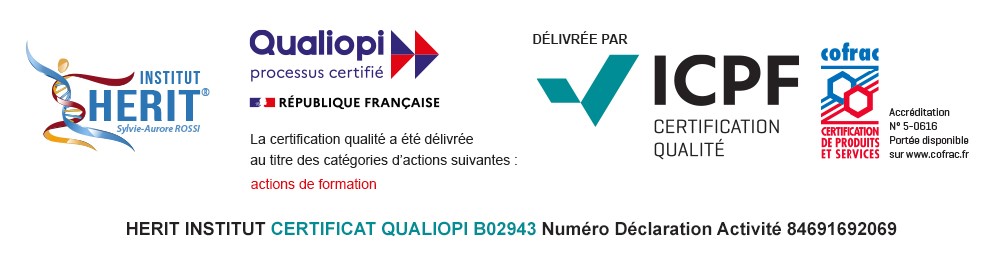 En 2019, en parallèle de mon activité en cabinet, j’ai créé l’Institut HERIT®, certifié Qualiopi, gage officiel de qualité (CERTIFICAT B02943).